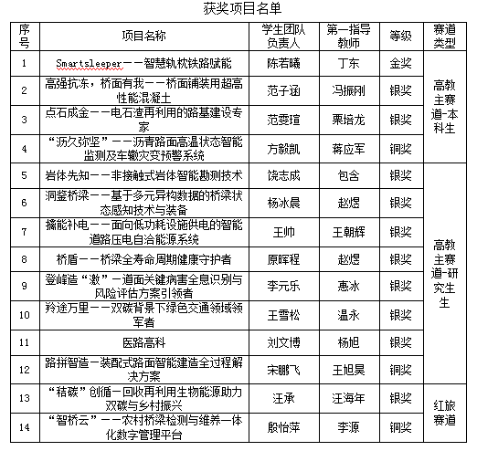 本次大赛以“我敢闯,我会创”为主题,以“更中国、更国际、更教育、更全面、更创新、更协同”为总体目标,吸引了全省101所学校、34万人次、7.2万个项目报名参赛,项目内容涵盖航空航天、芯片设计、智慧交通、数字经济、乡村振兴等多个领域。学院在本次“互联网+”大学生创新创业大赛中取得的优异成绩,充分展示了学院在人才培养和科技创新等方面的成效。以此为契机,学院将聚焦国家战略需求,坚持以赛促教,为全面提升公路交通拔尖创新人才自主培养质量,加快建设交通强国和教育强国贡献更多更大力量。