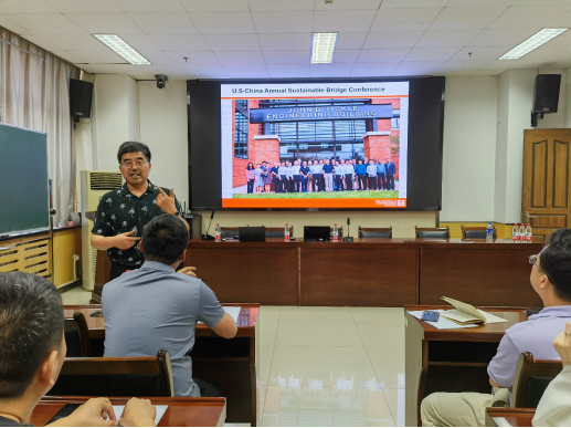 2023年7月25日下午马中国教授在校本部交通科技大厦601会议室为我院师生做了主题为“美国土木工程的最新发展”的学术报告。会议由桥梁工程系副主任周勇军教授主持。马教授围绕土木/结构工程的特点、历史发展、美国土木工程的就业形式、美国桥梁工程的现状及发展趋势等几个方面进行了详细阐述。报告结束后马教授就大家所关心的土木工程新型材料研究、有限元分析软件的使用、基础工程发展等问题进行了互动交流。本次报告内容深入浅出,学术氛围浓厚,讲解通俗易懂,引起了在座师生的极大兴趣。