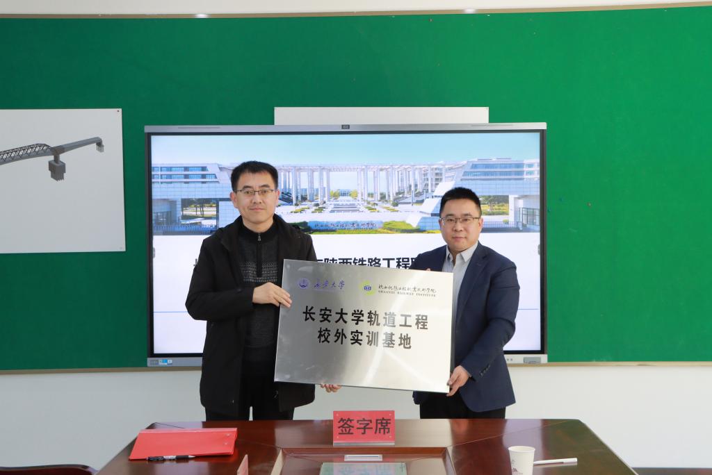 随后,双方签订了《高铁智慧建造协同创新中心共建协议》《长安大学轨道工程校外实训基地共建协议》,进行了授牌仪式,并参观考察了陕铁院实践教学基地。