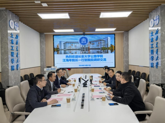 10月31日上午,汪海年一行到访西南交通大学土木工程学院进行参观调研。汪海年一行首先到极端环境岩土和隧道工程智能建养全国重点实验室进行参观,了解实验室的发展历程、师资结构、科研成果、运行与管理机制等情况,与实验室负责人就相关问题进行交流和探讨。随后,汪海年一行与土木工程学院院长蒲黔辉、党委副书记兼副院长车小洁、党委副书记刘萍等开展座谈。蒲黔辉对汪海年一行来学院调研表示诚挚欢迎,他介绍了学院改革发展与转型升级探索的具体举措,以及在人才队伍建设、学科建设、科研成果、人才培养等方面的成果成效,并表示希望通过此次座谈会增进了解、促进合作。汪海年对土木工程学院在综合试点改革以来取得的成果给予高度评价。他表示,本次调研深入学习了土木工程学院在人才培养、有组织科研以及改革转型等方面的先进做法和经验,期待在人才培养、科学研究等方面开展更深入的交流与合作。