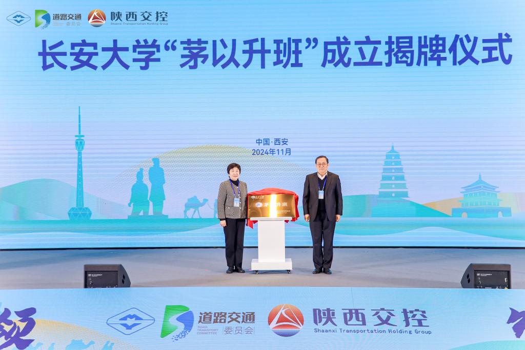 2024年11月12日,全国高速公路绿色智能养护技术研讨会暨交通商贸合作发展大会在西安浐灞华邑酒店隆重举行,会上为“长安大学‘茅以升班’”成立举行了揭牌仪式。