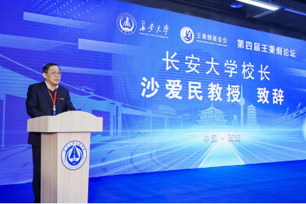 沙爱民代表学校致辞,他指出,长安大学作为国家“双一流”建设高校和交通强国建设试点单位,紧抓战略机遇,构建了以交通运输工程世界一流学科为主体,“地上、地面、地下”全覆盖的“大交通”学科体系,形成了行业特色学位体系和拔尖创新人才培养体系,深度参与了各个时期的国家重大工程建设,为“交通强国”建设作出了不可替代的重要贡献。长安大学依托“王秉纲基金”,已经先后举办了三届王秉纲论坛,论坛已经发展成为公路交通领域学术交流的盛会。未来,学校将继续做大做优“王秉纲基金”,扩大基金在全国全行业的品牌效应,进一步弘扬以王秉纲先生为代表的老一辈公路交通领域教育家、科学家的精神,加强与行业、校友和社会各界的交流合作,努力实现更高层次合作共赢,共谋交通事业高质量发展新篇章。