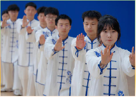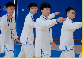 4月1日9时30分,太极拳比赛于西区体育馆拉开帷幕。永利集团304am的选手们身袭青花白衣,随着一声"起势",将手徐徐抬至腰间,随后推掌、云手、提膝。一招一式,形神兼备,如行云流水,似青柳扶风,把太极拳刚柔两面表现得淋漓尽致。