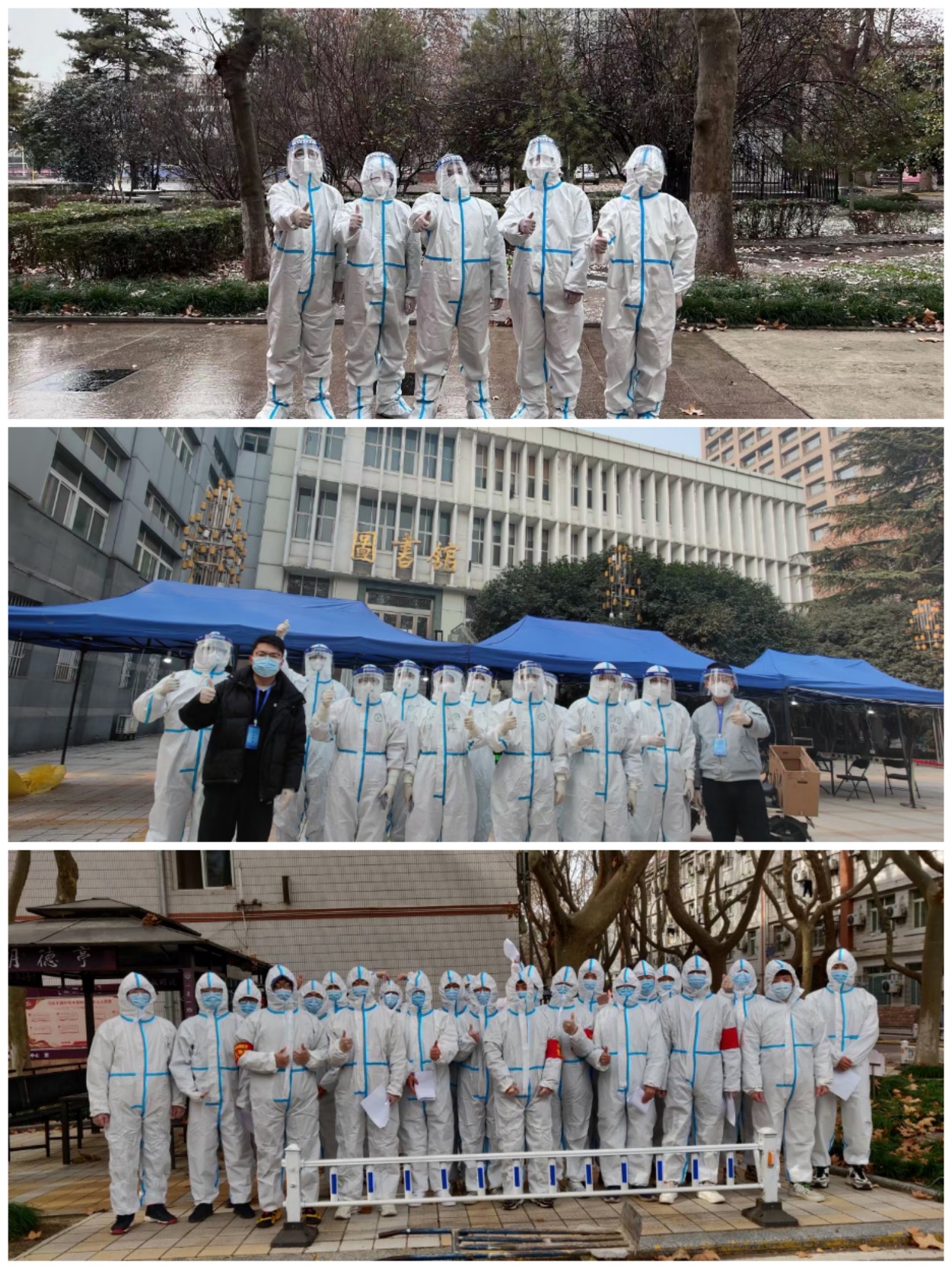 在本次疫情防控中,由于学生基数庞大,为减轻医务工作者的工作量,保证核酸检测有序高效进行,我院党员志愿者不顾危险、逆行而上,投身于协助医务工作者核酸检测的工作中。其中硕2108党支部吴为、杨浩等志愿者协助医务工作者共同前往学生宿舍采集核酸样本;硕1912党支部张博星做为兼职辅导员更是积极发挥党员的先锋模范作用,在每次核酸检测时都身穿防护服值班;硕2104党支部党员、硕1904党支部辛磊,在核酸检测工作中主动担任现场秩序维护和健康码扫描确认的工作。在核酸检测工作中,我院研究生党员勇担挑战,共克时艰,助力疫情防控,充分发挥党员先锋模范作用和支部战斗堡垒作用,让党旗高高飘扬在疫情防控一线。