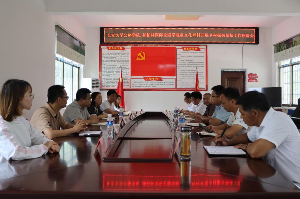随后,双方在文化坪村党群活动中心开展座谈。黄青向永利集团304am和长安都柏林国际交通学院多年来对赵川镇的帮扶与支持表示衷心感谢,就赵川镇目前的建设发展向与会人员进行介绍。黄开峰回顾了长期以来两院对文化坪村的帮扶措施,介绍了村里近年来的显著发展变化,就村中特色产业下一步发展、中药材种植、生态旅游业开发等方面同与会人员交流探讨。