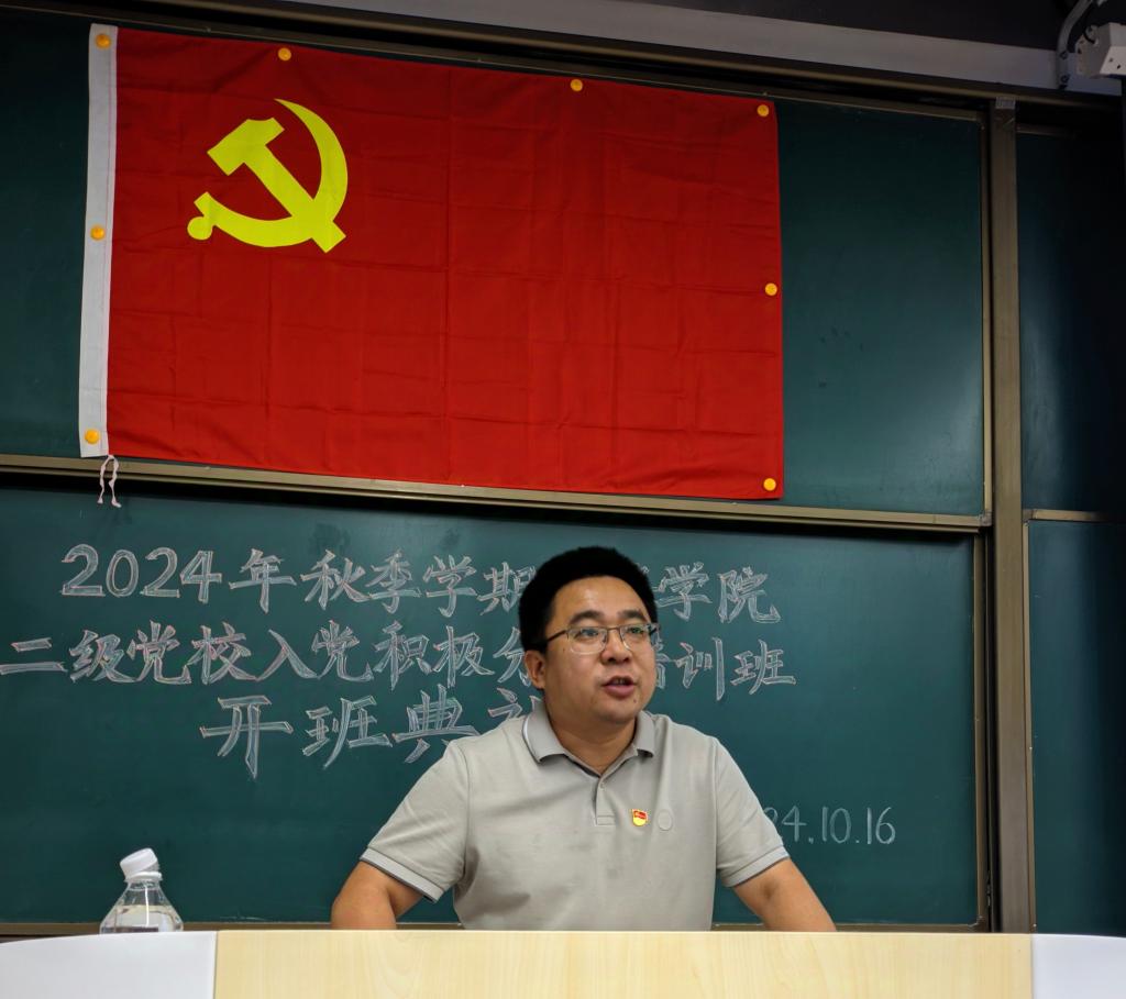 2024年秋季学期永利集团304am二级党校入党积极分子培训班开班典礼于10月16日在WH1307教室举行。永利集团304am党委书记张久鹏、党委正处级组织员廖谦、党委副书记贾历波、学办主任卢毅、团委副书记王达、全体辅导员及57名受训学员参加此次典礼。典礼由副班主任刘亦澜主持。