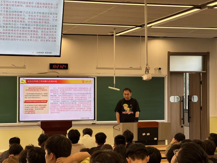 党员代表刘轩辰、刘治国分别向研究生和本科生党员传达了学校第五次党代会精神,通过学习党委工作报告,学生党员全面了解了过去五年学校建设发展所取得的成就和未来五年学校重点建设的“三六八一”战略规划。全体学生党员深刻理解到,学校正处于关键时期,即以中国式现代化全面推进国家强盛和民族复兴的伟大事业,这一时期我们既面临前所未有的历史使命和机遇,也面临严峻的发展挑战。作为永利集团304am的学生党员,必须紧密团结在学校的发展目标周围,勤奋学习专业知识,不断提升个人的综合素质,为学校的发展和教育强国的建设贡献我们的智慧和力量。