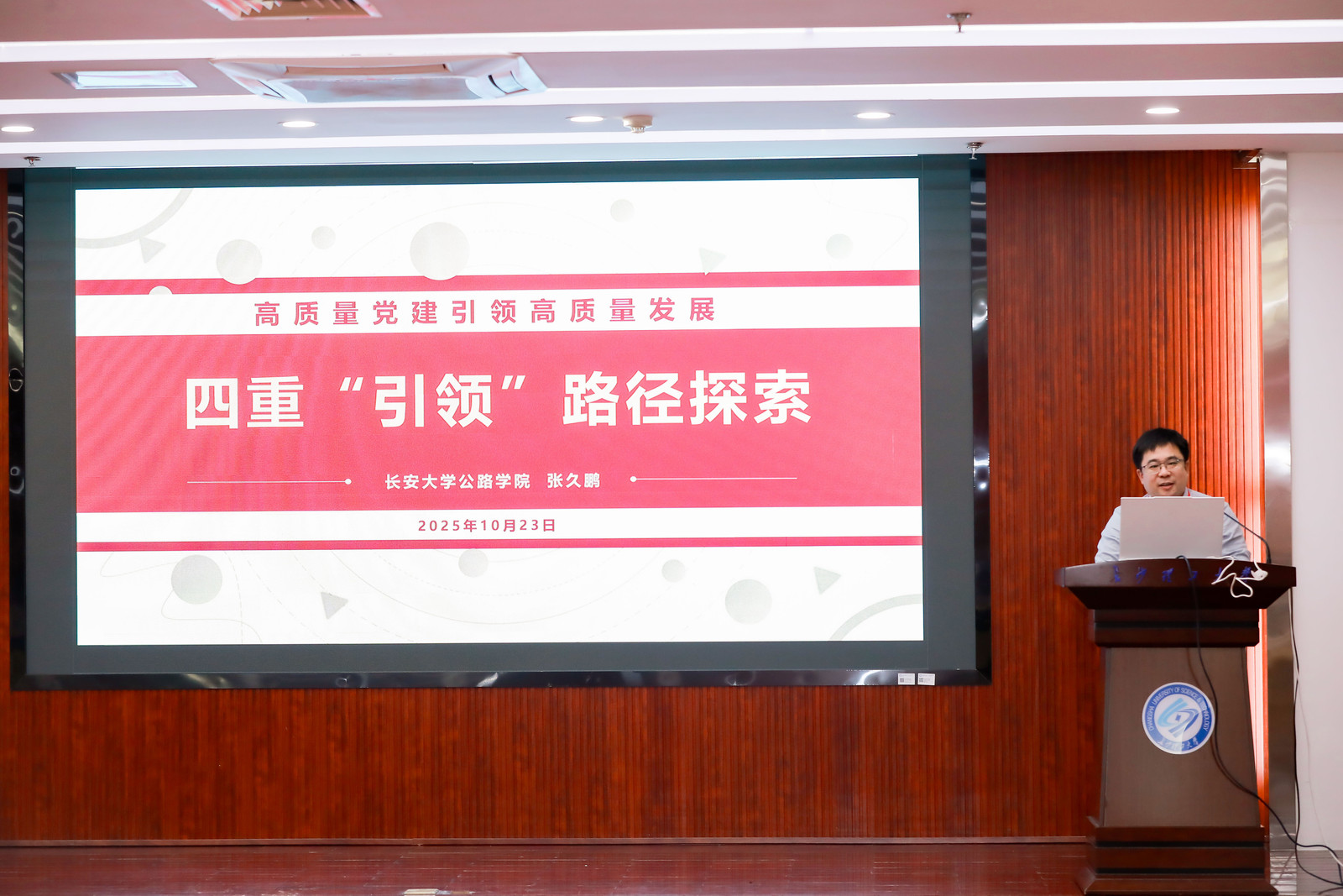 下午,张久鹏一行先后参观长沙理工大学“三全育人”教育基地、公路养护技术国家工程研究中心全国重点实验室、极端环境绿色长寿道路工程全国重点实验室。随后,在主题发言及交流环节,张久鹏以《高质量党建引领高质量发展的四重路径探索》为题进行了主题交流发言。他深刻剖析了在新时代背景下,高等教育面临的新形势、新任务、新要求,并系统阐述了如何充分发挥党的政治优势、组织优势和制度优势,以“一融双高”新成效,推动学校和学院各项事业高质量发展。
