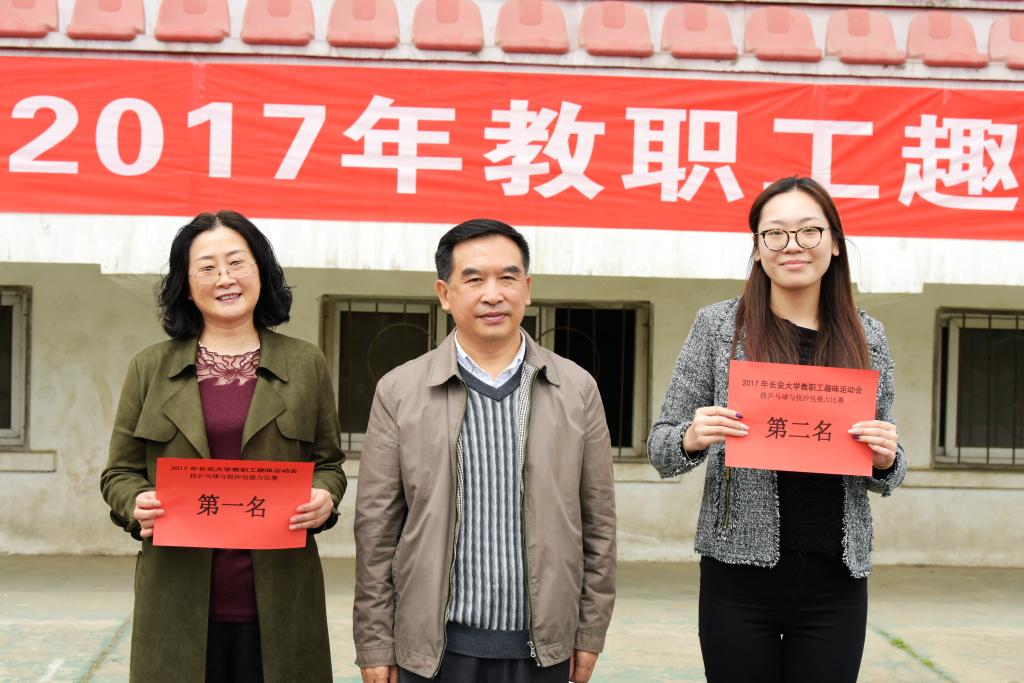 为了贯彻落实文体活动的“广泛性、群众性、健康性、竞技性、趣味性、文化性”,营造健康向上的校园文化氛围,培养教职工良好的体育锻炼习惯,提高教职工身体健康素质,校工会于2017年4月20日上午在校本部北院体育场(足球场)举办了以“享受运动快乐、拥有健康体魄”为主题的教职工趣味活动,活动项目包括:夹乒乓球与投沙包接力比赛(8女8男)、足球踢准接力比赛(8女8男)及五人木质协力竞走接力比赛(5女5男)三项。